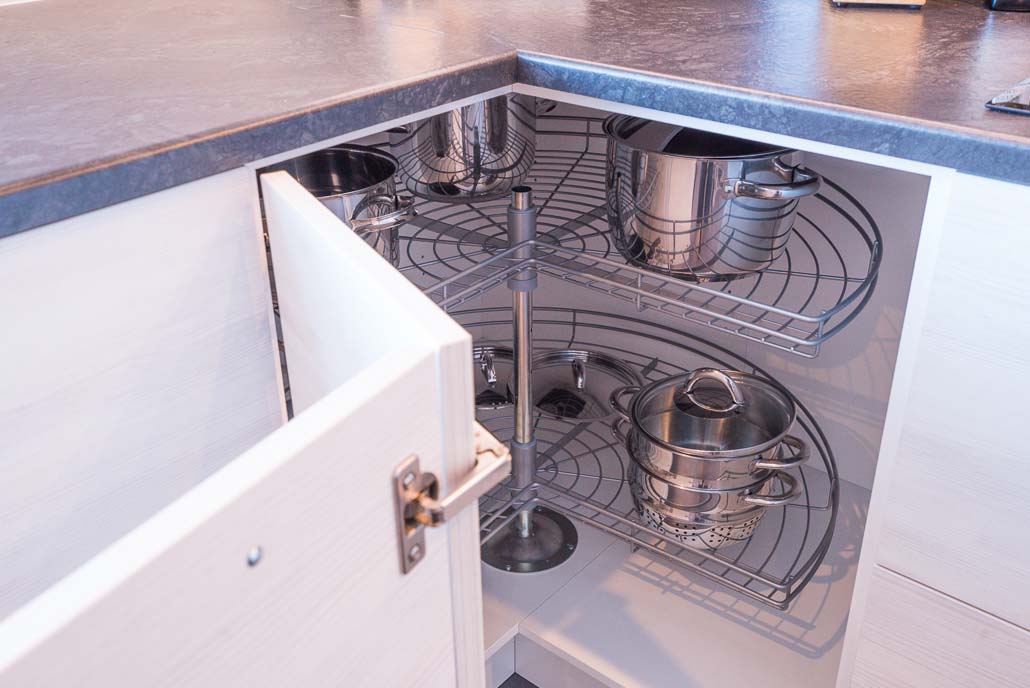 Laatikoita helppoon tavarasäilytykseen on reilusti, joten kulmamekanismiksi valittiin perinteinen karuselli.