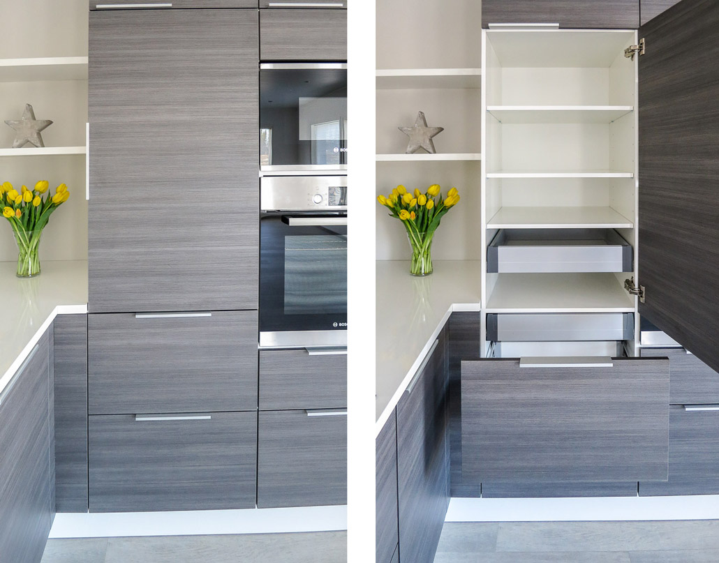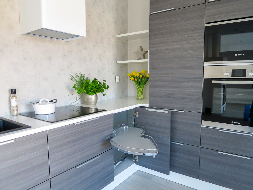 Tehokkaan kulmamekanismi Le-mansin avulla saa kattilat ja kulhot helposti esille.