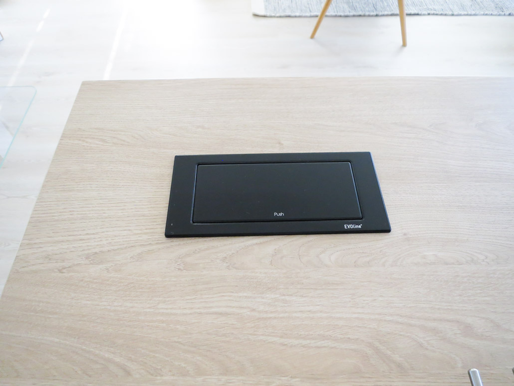 Saarekkeen sähköpiste tehokkaasti tasoon upotettuna.