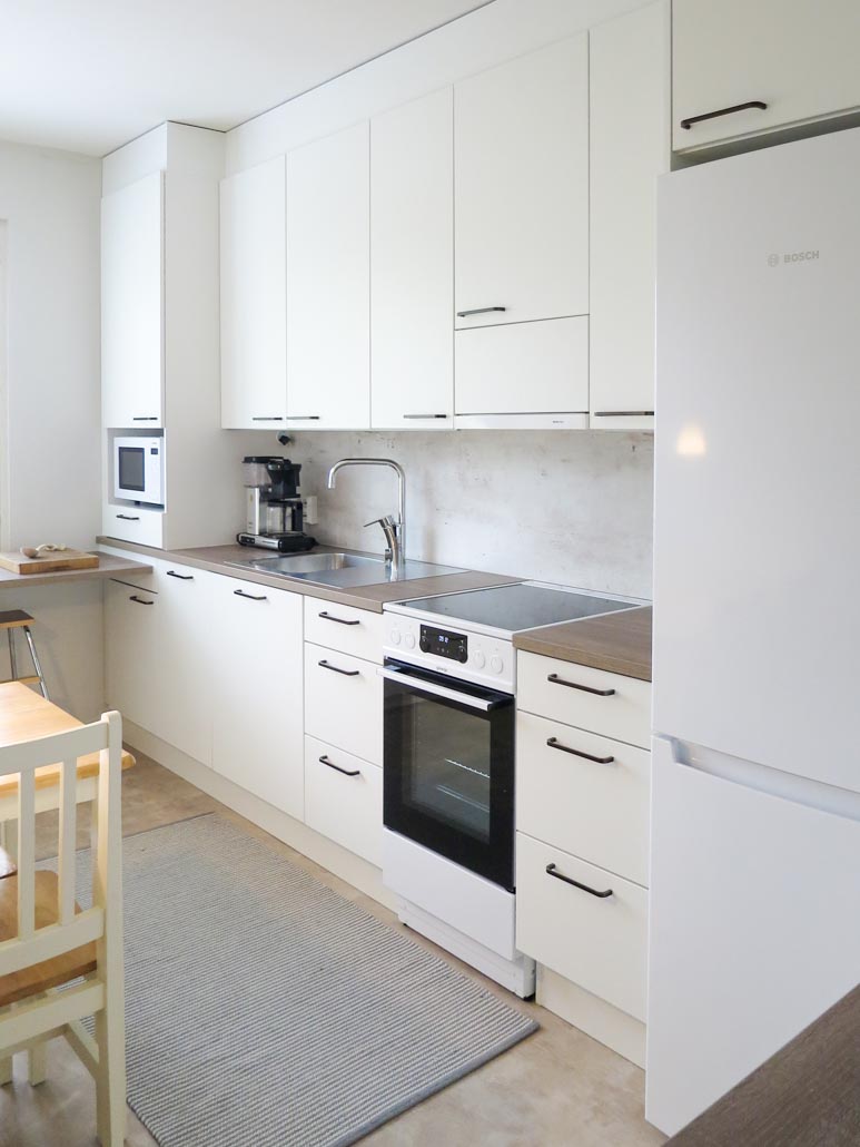 Pienessä keittiössä kokonaisuuden harmonia ja rauhallisuus on erityisen tärkeää.